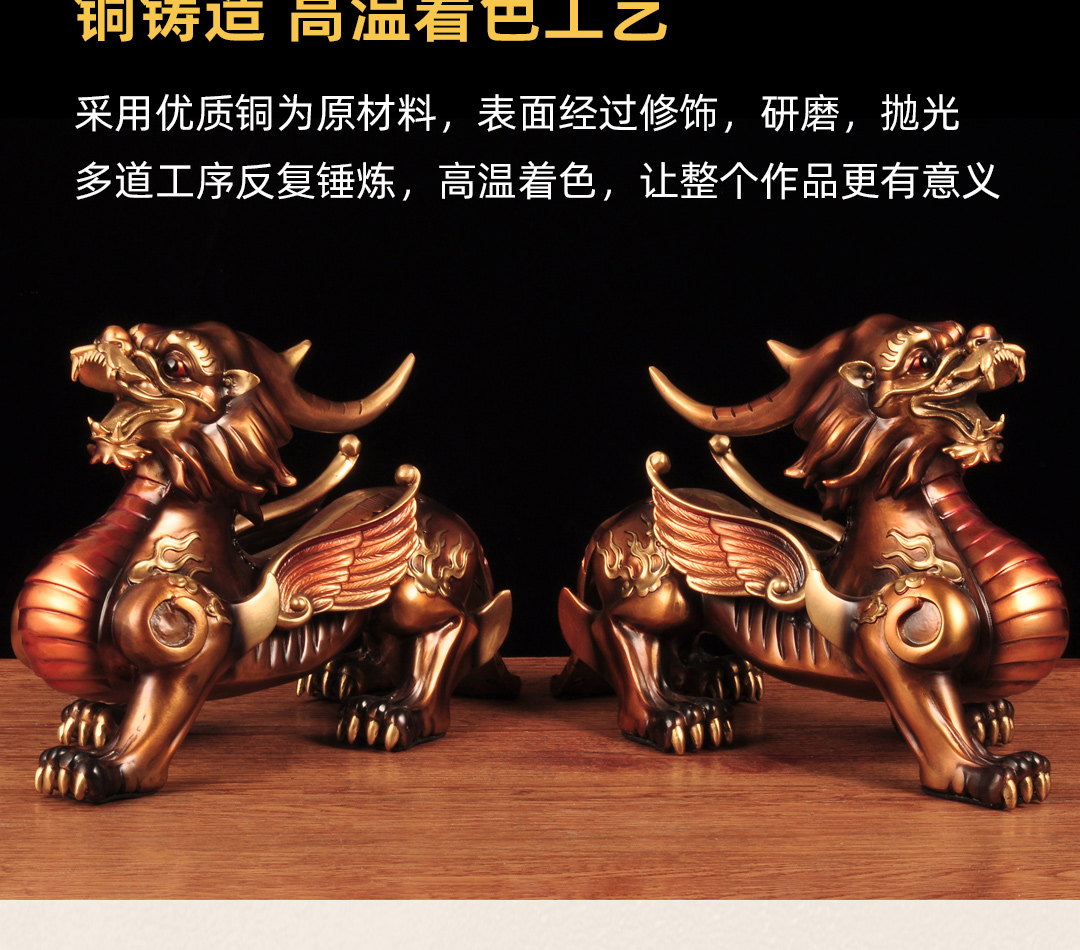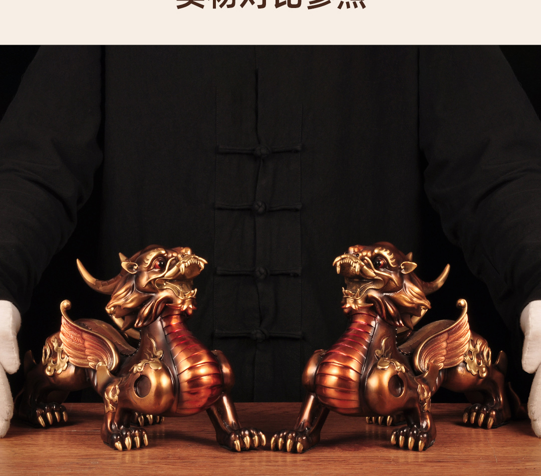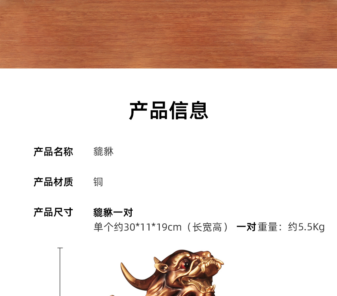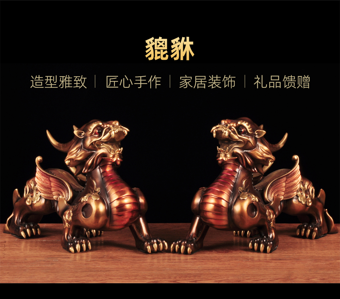 56 / 彩铜貔貅摆件一对招财皮丘家居客厅玄关酒柜风水装饰品开业送礼品