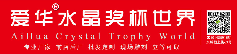 四川成都爱华水晶礼品世界是四川成都地区首屈一指的大型水晶工艺礼品生产基地(专业制造、前店后厂、方便快捷、质优价廉),位于物产丰富的四川成都,始建于20世纪90年代。本公司是一家拥有雄厚设计、开发、生产实力的专业水晶礼品制作公司,本公司具有多年的丰富经验,技术力量雄厚,生产设备精良,拥有一流的水晶生产线,生产工艺先进,用料考究、工艺精细,公司一直致力于水晶奖杯、水晶奖牌、水晶工艺品、水晶纪念品、水晶奖杯奖牌、水晶礼品(水晶纪念礼品、水晶圣诞礼品、水晶赠送礼品、水晶礼仪礼品、水晶会务礼品、水晶商务礼品、水晶广告礼品制作、水晶收藏珍品制作、水晶宗教礼品制作)、水晶模型制作(水晶楼模制作、水晶车模制作、水晶船模制作、水晶飞机模型制作)、水晶雕刻加工产品(水晶内雕、水晶深雕、水晶喷砂雕刻、水晶彩雕、水晶镂雕)、水晶相框、水晶彩像及水晶影像白胚耗材等系列产品的专业开发、设计、生产、销售,我们设计制作的水晶产品玲珑剔透、高贵典雅、美观大方、光彩照人,具有较高的欣赏、实用及收藏价值,是会议庆典、商务促销、外事往来、企业形象推广和摆放收藏的理想纪念礼品,款式、规格可按客户要求设计定做,可内雕或喷沙上贵公司的企业LOGO图纹等,深受广大中外客户特别是国内各大城市及港、台、美、韩、欧等国家与地区的赞誉与信赖。
