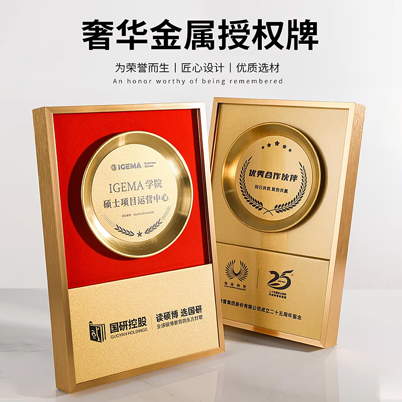509 / 成都金属奖牌授权牌定制高级牌匾退休…