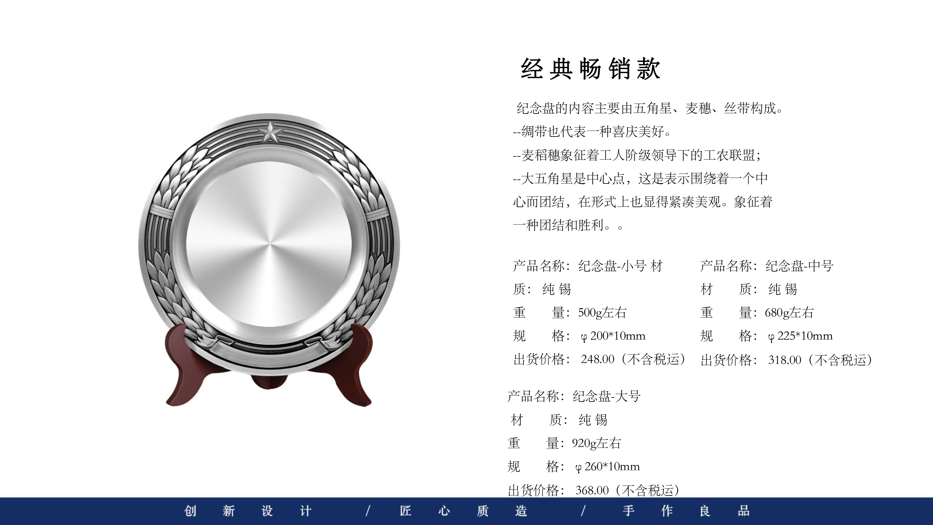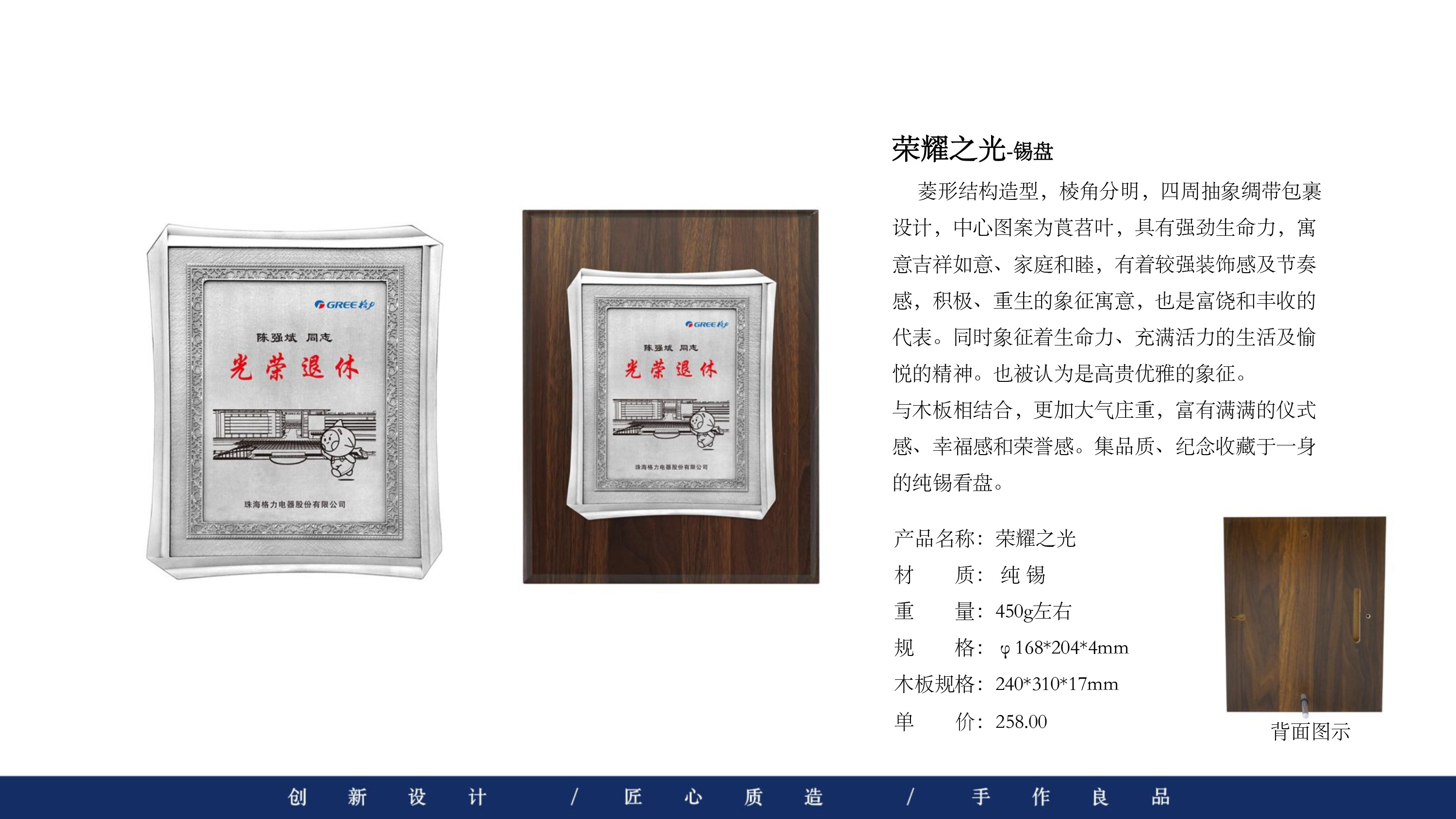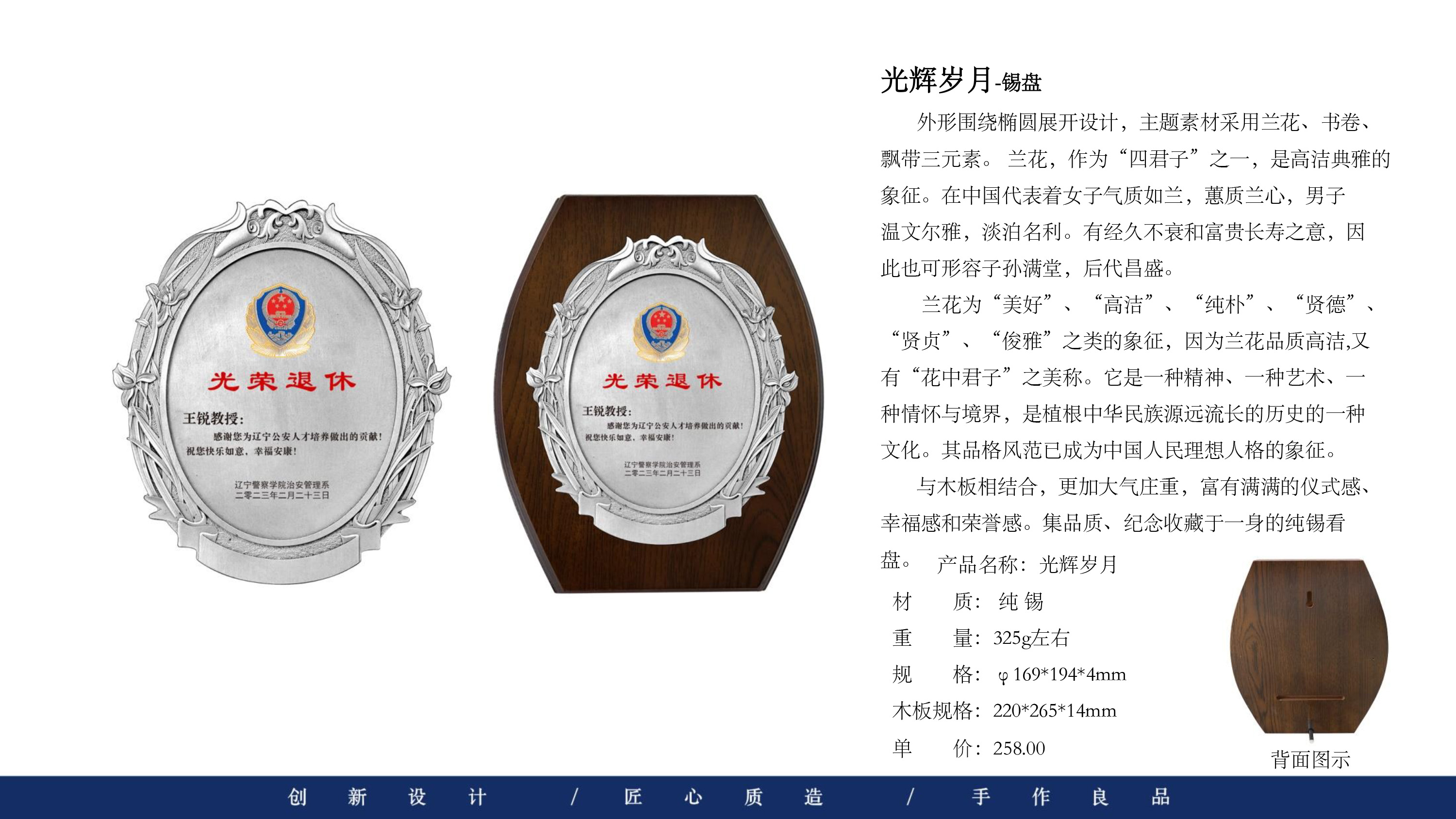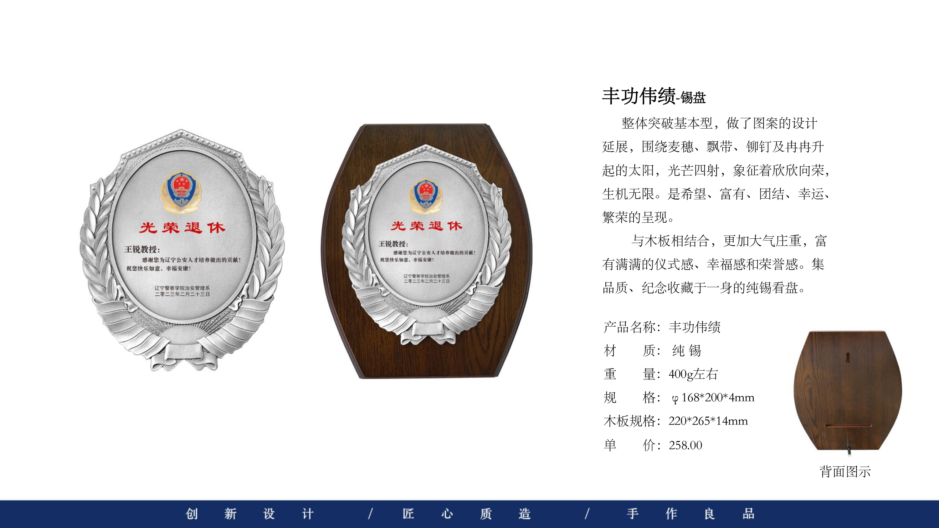 503 / 【纯锡奖盘】定制logo高档金属荣誉奖牌办公摆件退伍领导退休纪念品