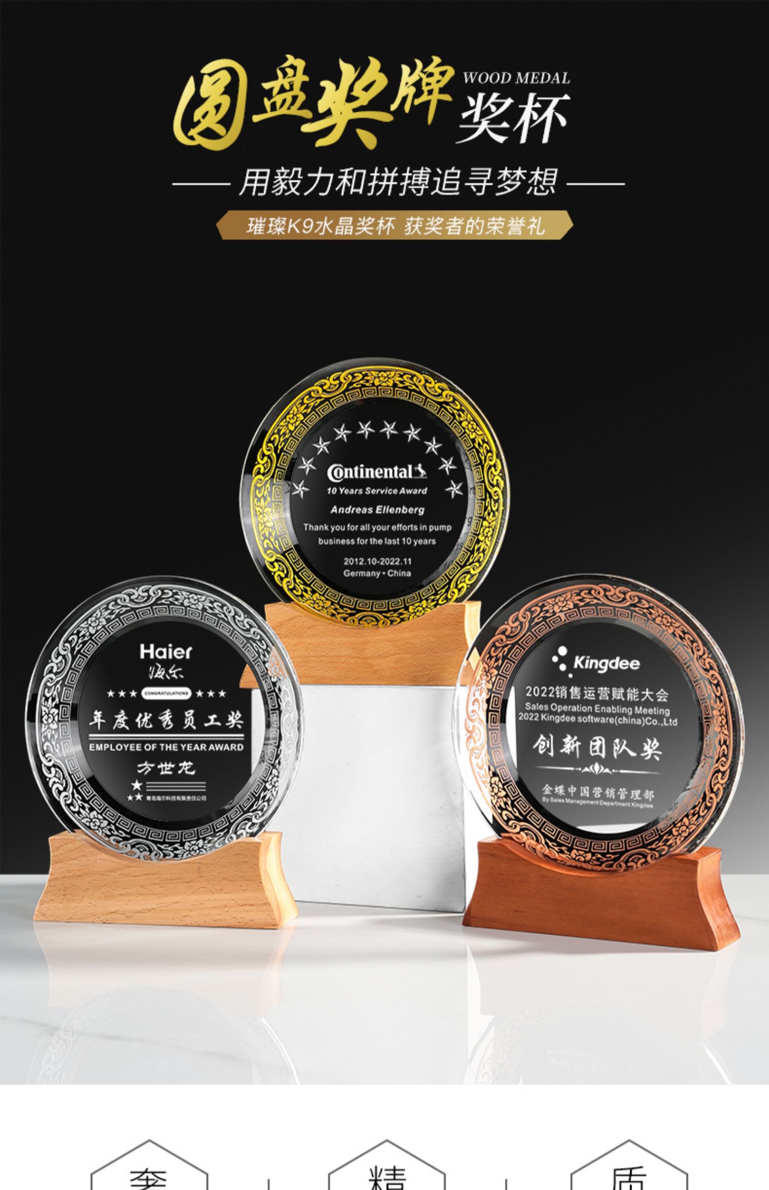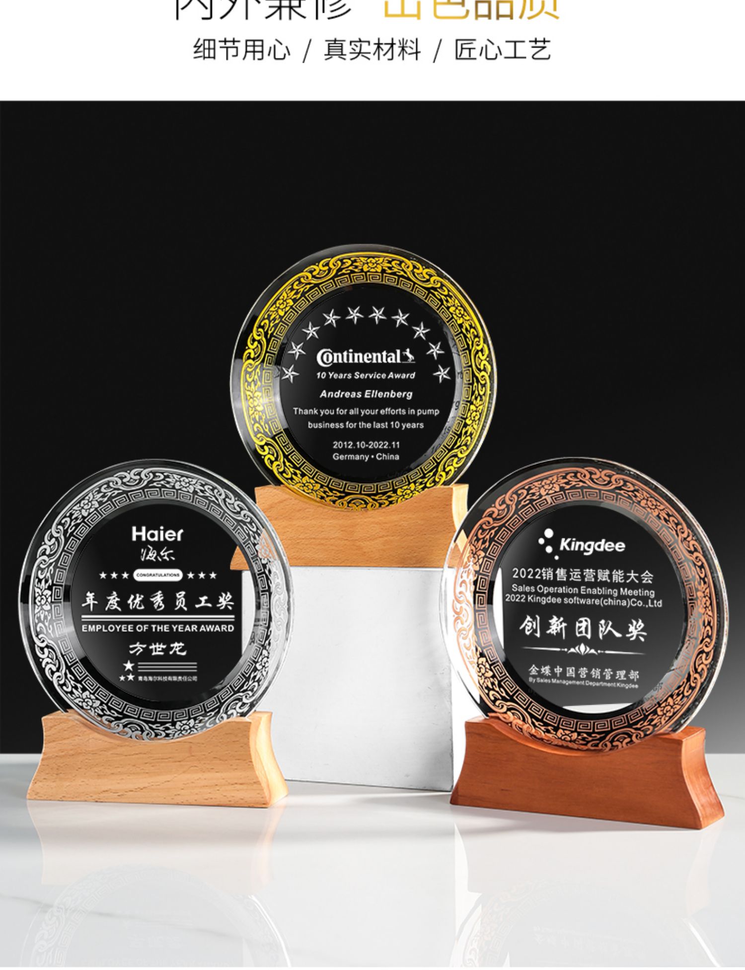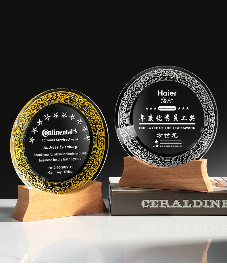 505 / 【水晶奖盘】定制退休纪念品送老师同事荣休礼物感谢实木奖牌定做