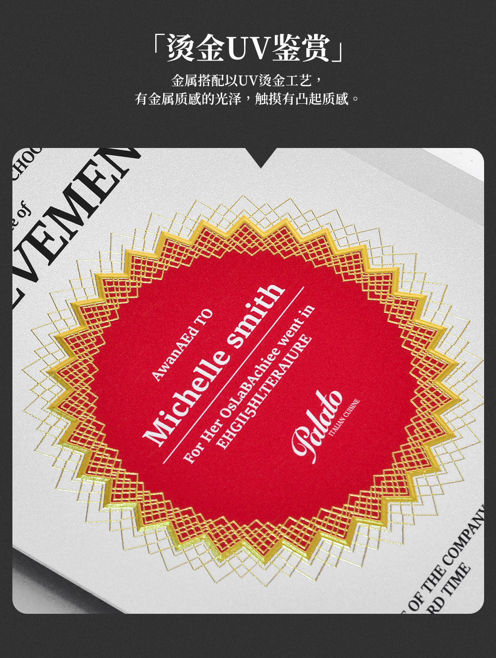 培训获奖定制荣誉 荣誉证书金葱磨砂