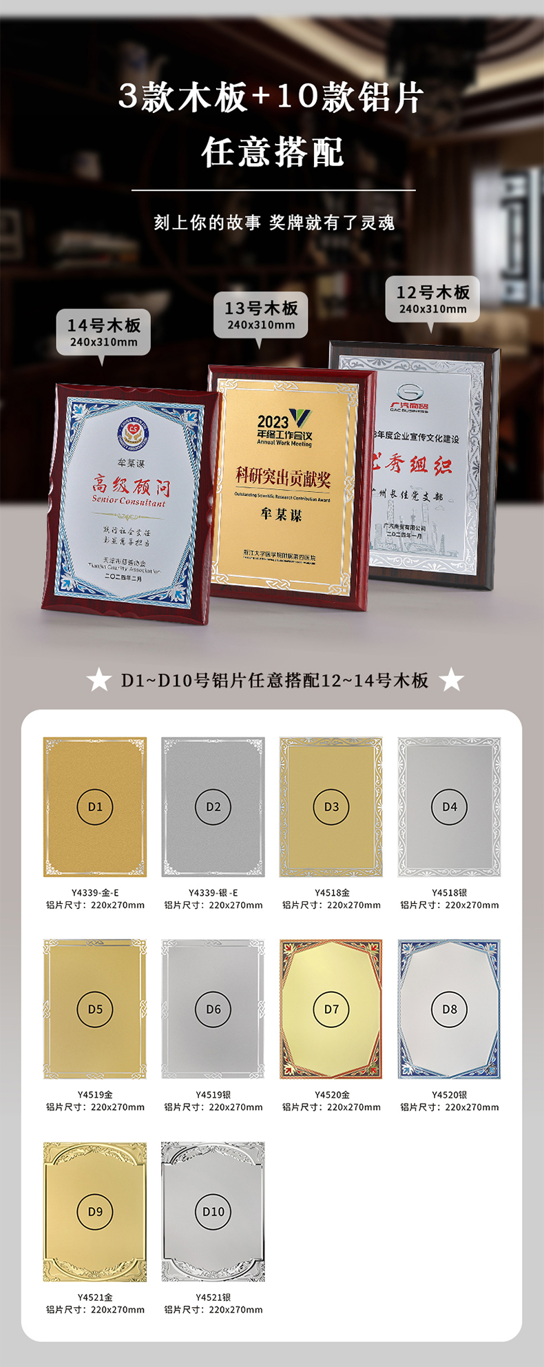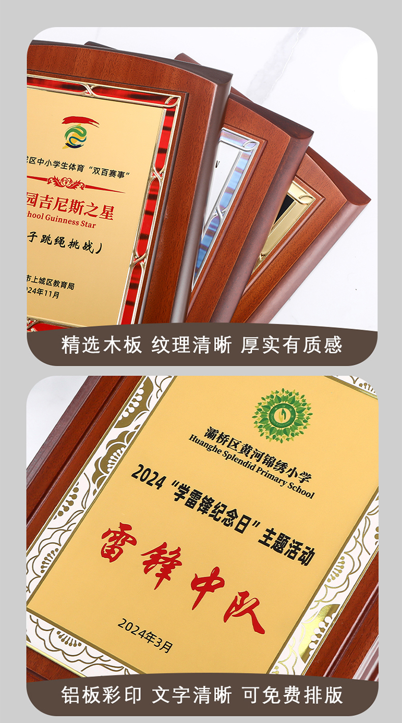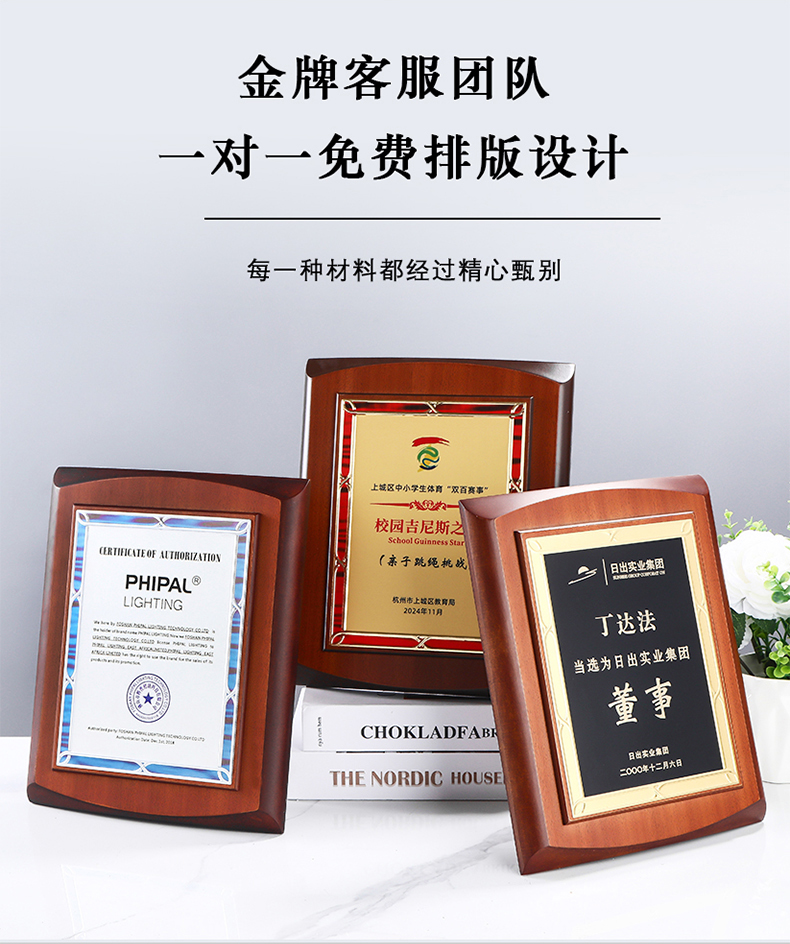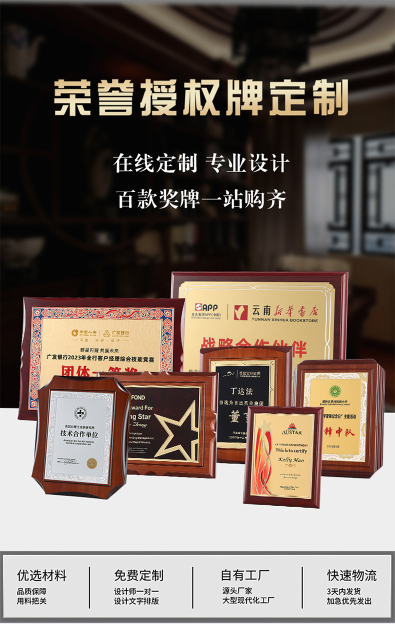 601 / 奖牌定制定做颁奖证书荣誉牌刻字牌匾铜牌木托木质奖杯挂牌授权牌