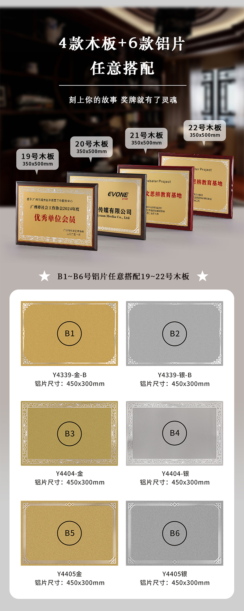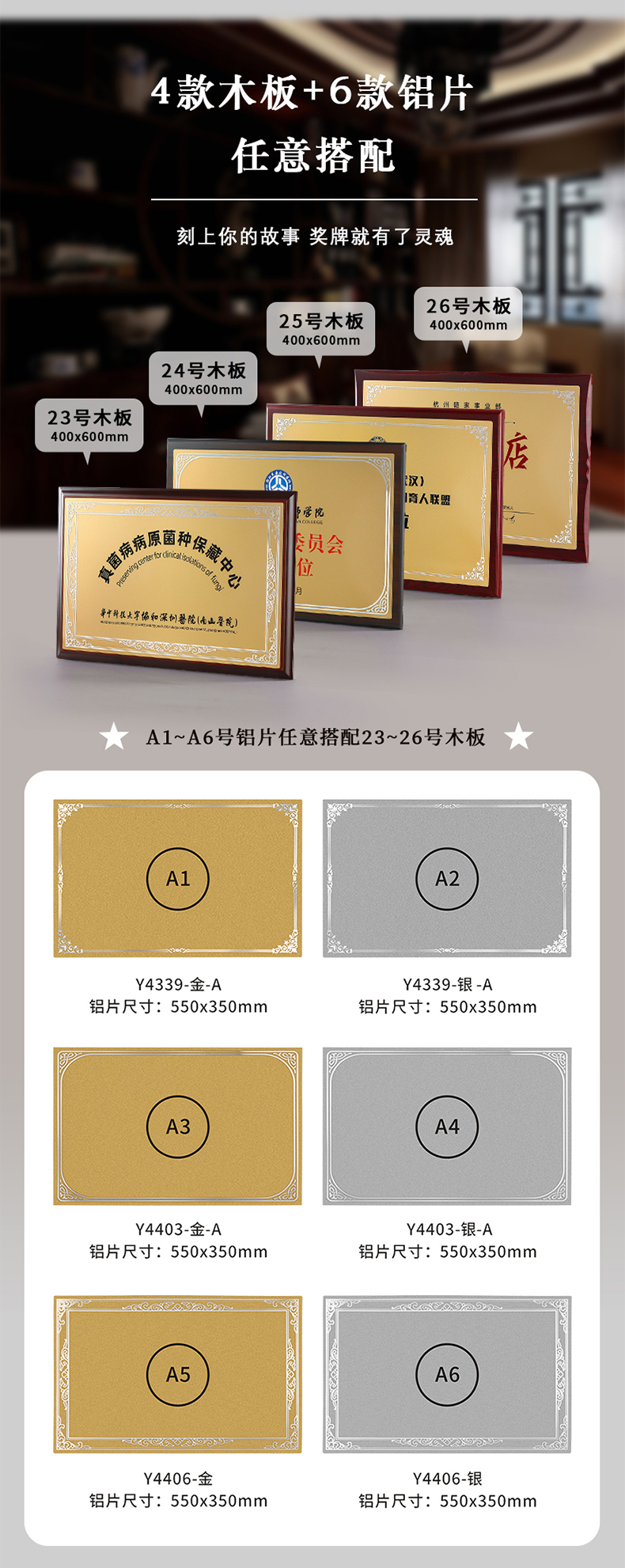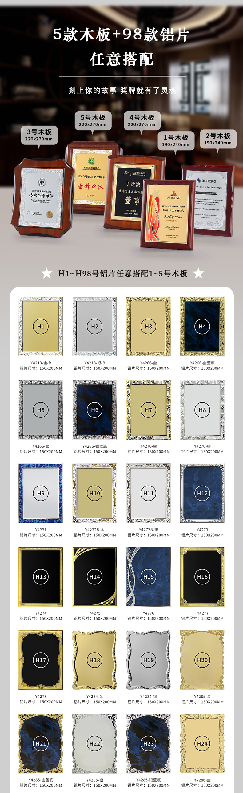 601 / 奖牌定制定做颁奖证书荣誉牌刻字牌匾铜牌木托木质奖杯挂牌授权牌