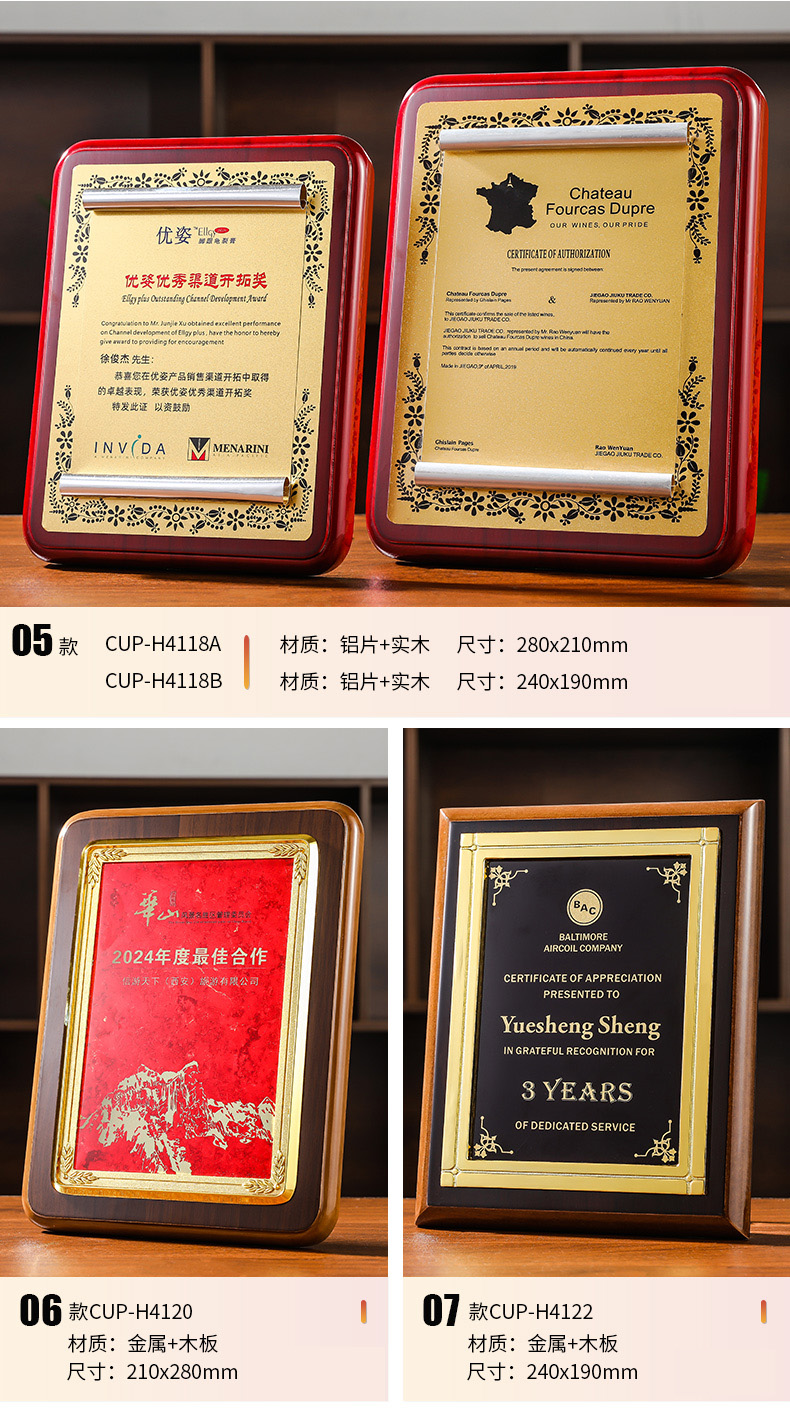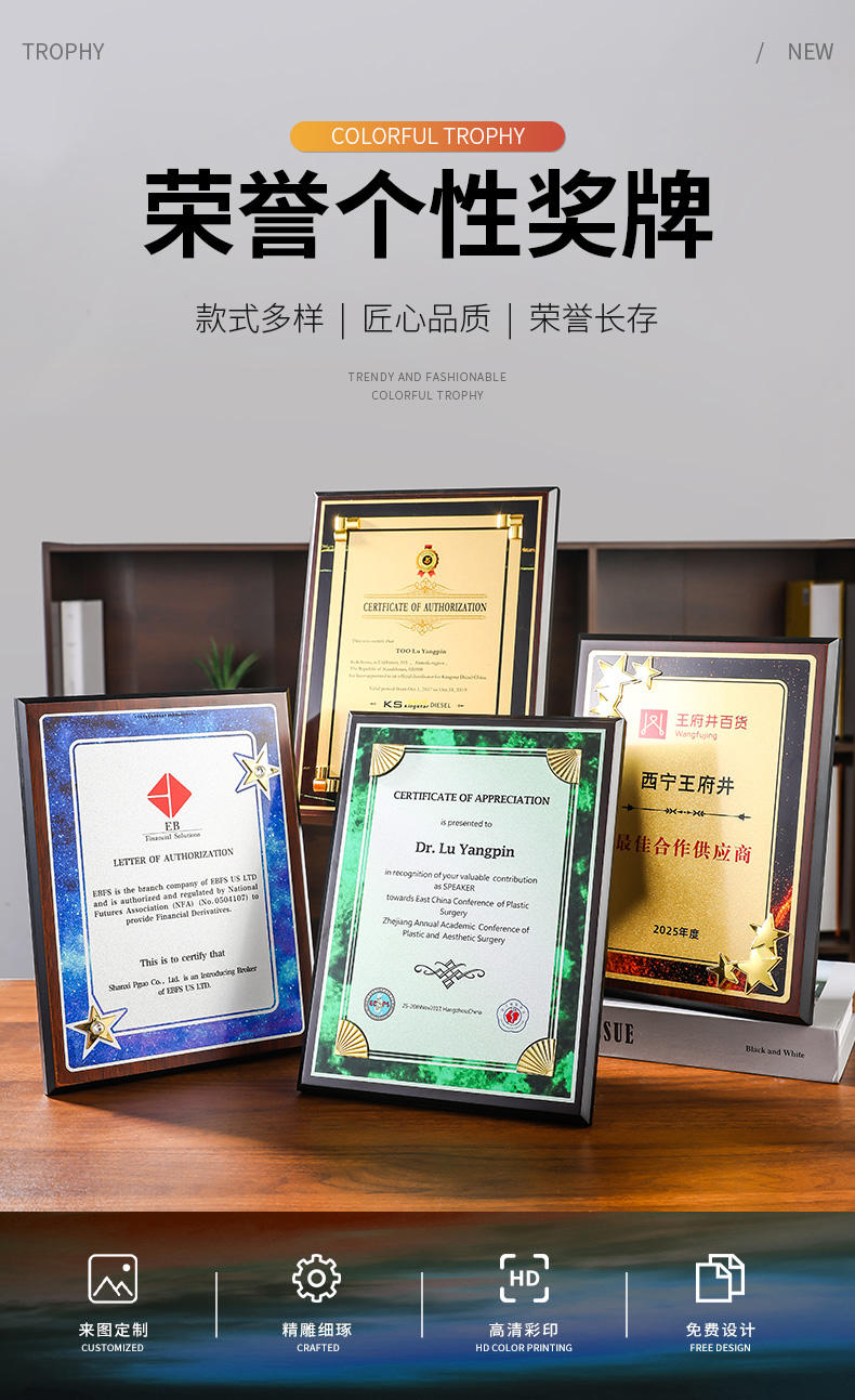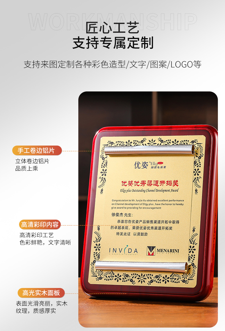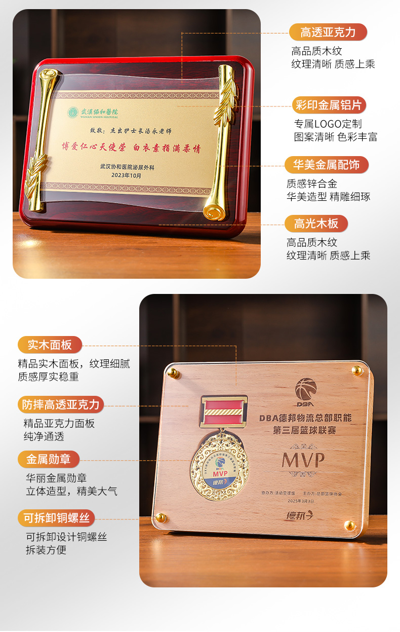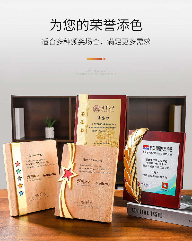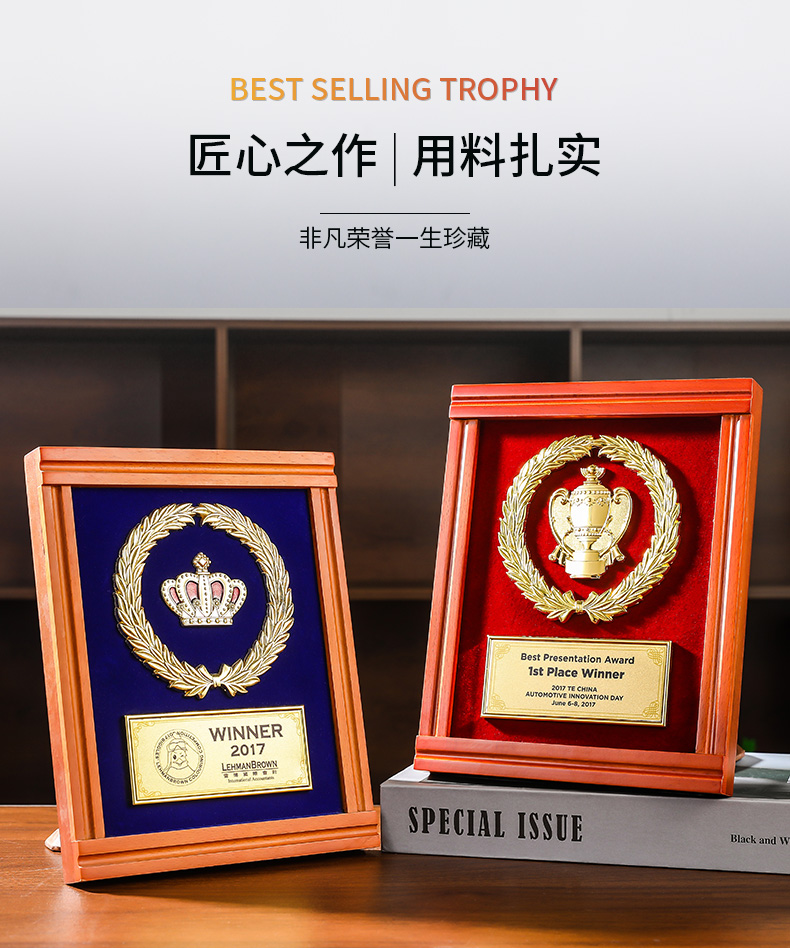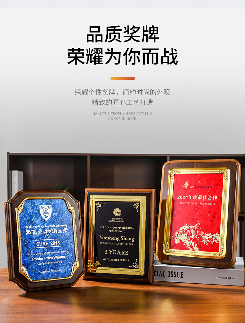 胡桃木铝片奖牌授 胡桃木实木水晶奖