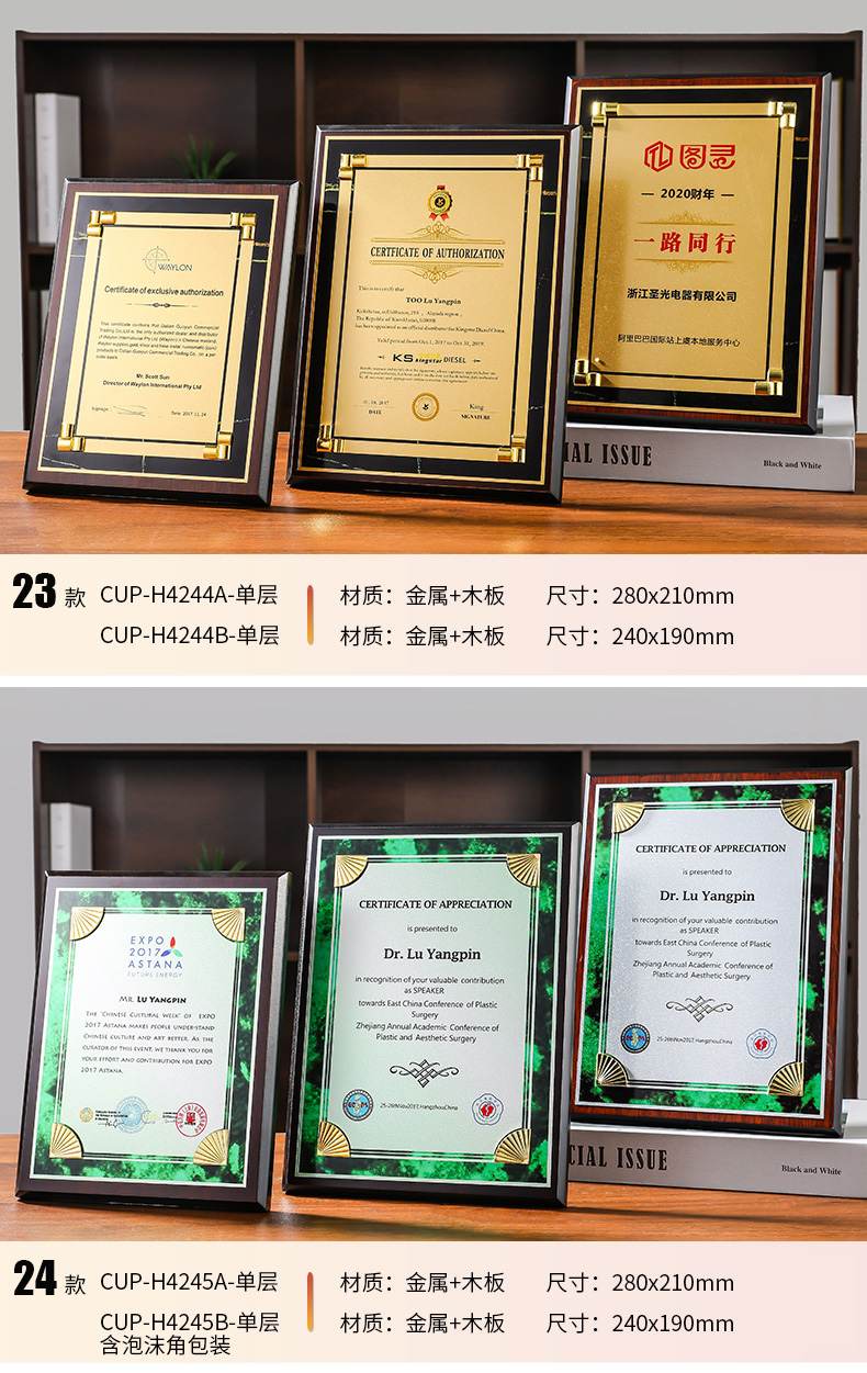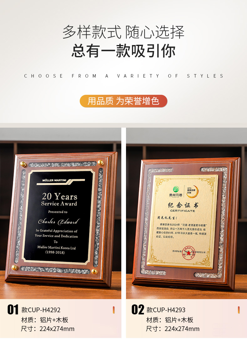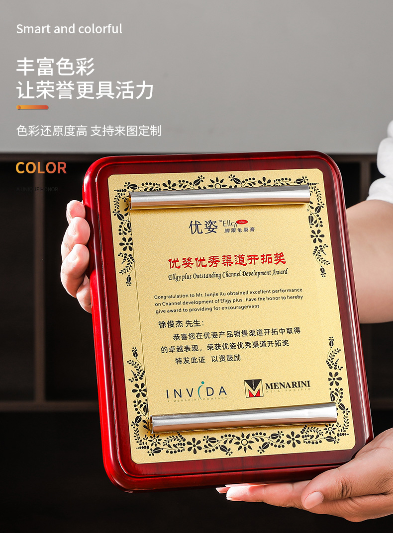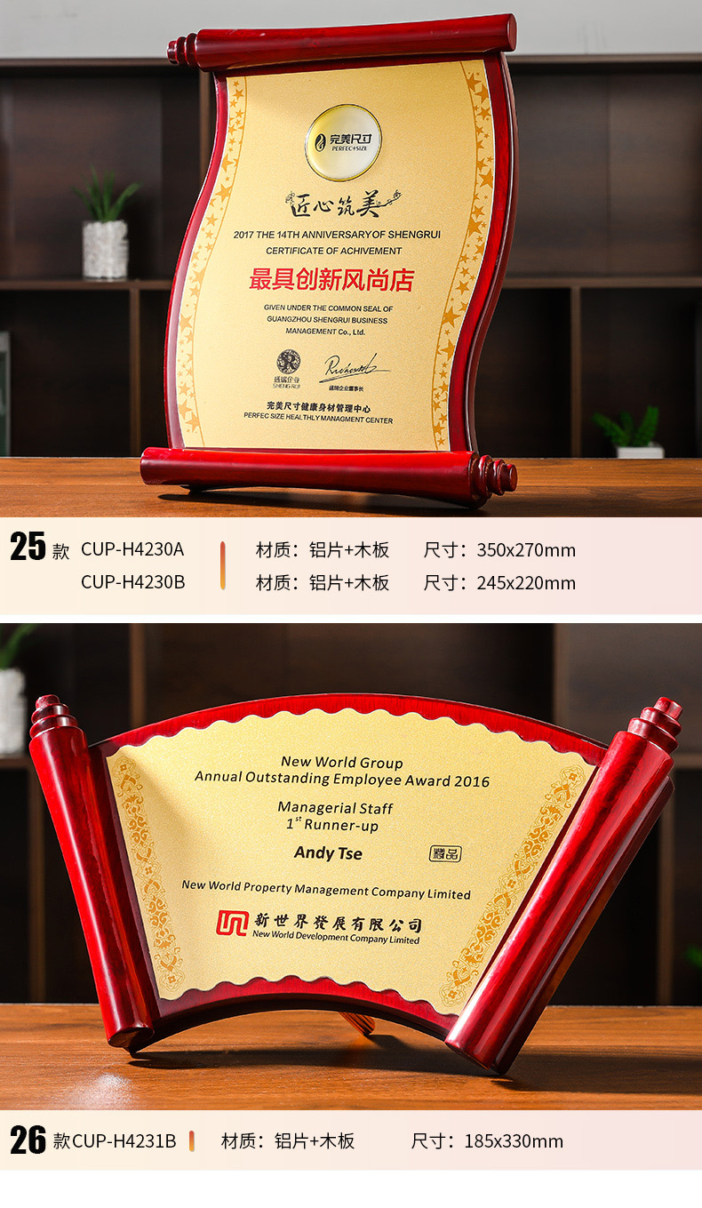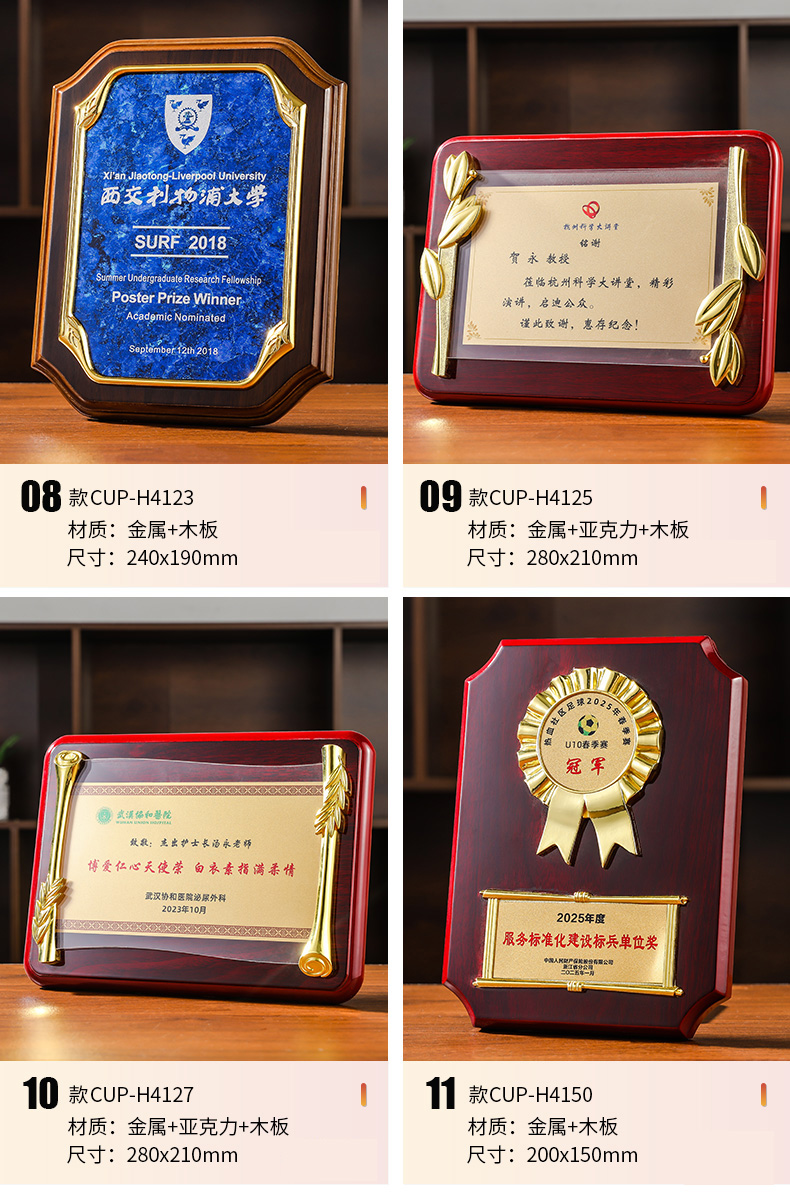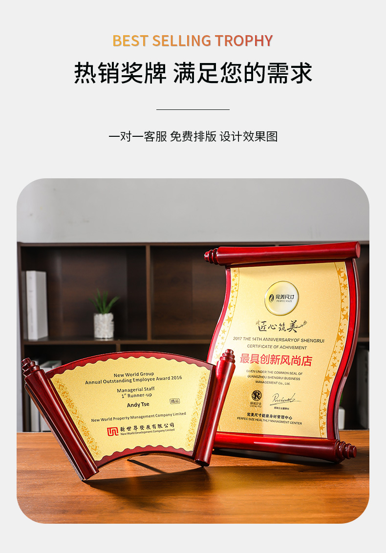 胡桃木铝片奖牌授 胡桃木实木水晶奖