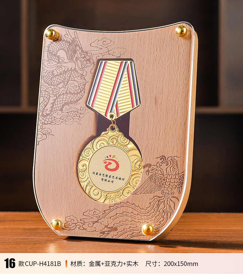 盾牌压花铝片奖牌 折叠木盒式奖牌系