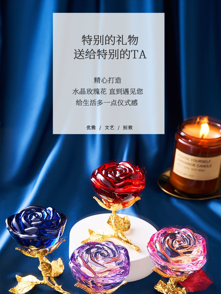 918 / 【水晶玫瑰花】工艺品生日礼物新品高级感永生花桌面装饰精致摆件