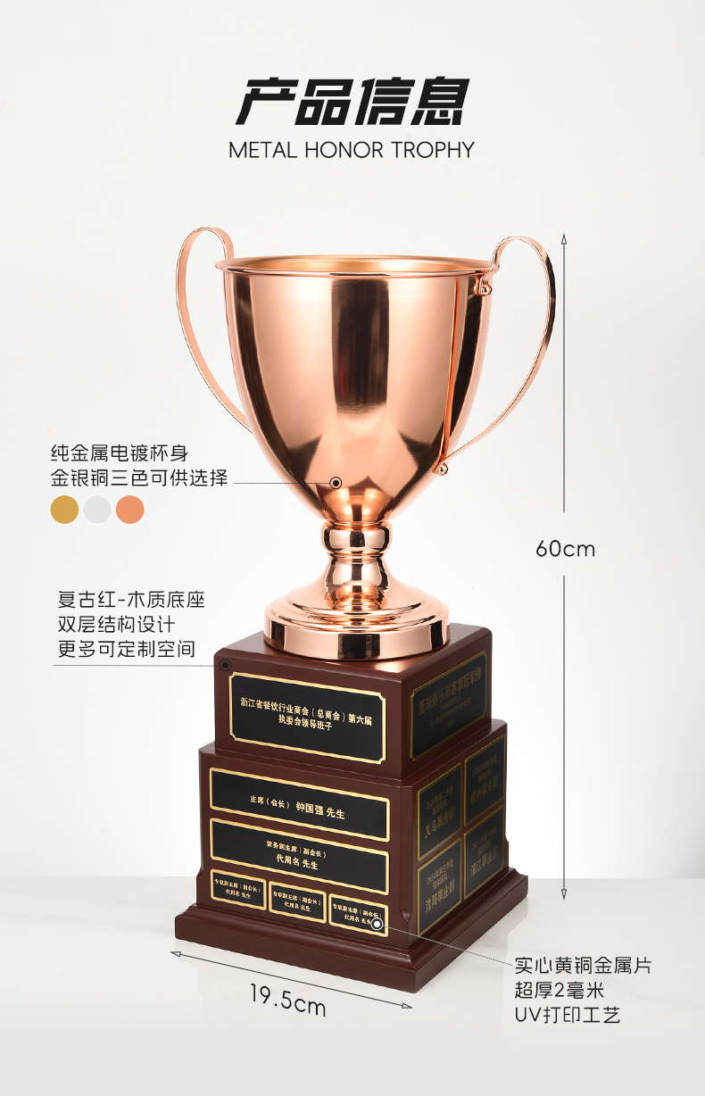 1101 / 双层铜色大号金属大奖杯多用欧冠足球篮球电竞比赛欧洲杯大力神杯