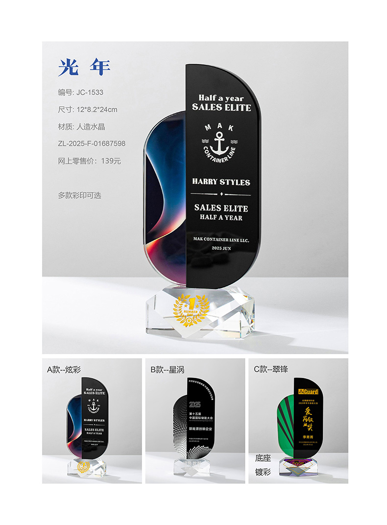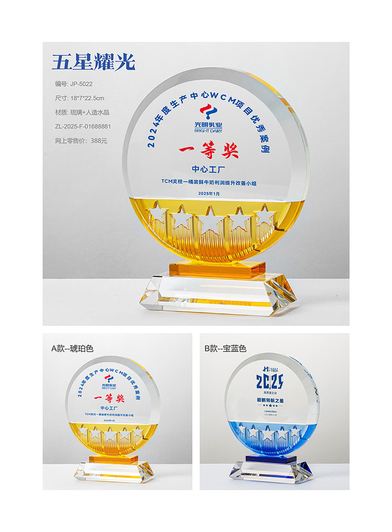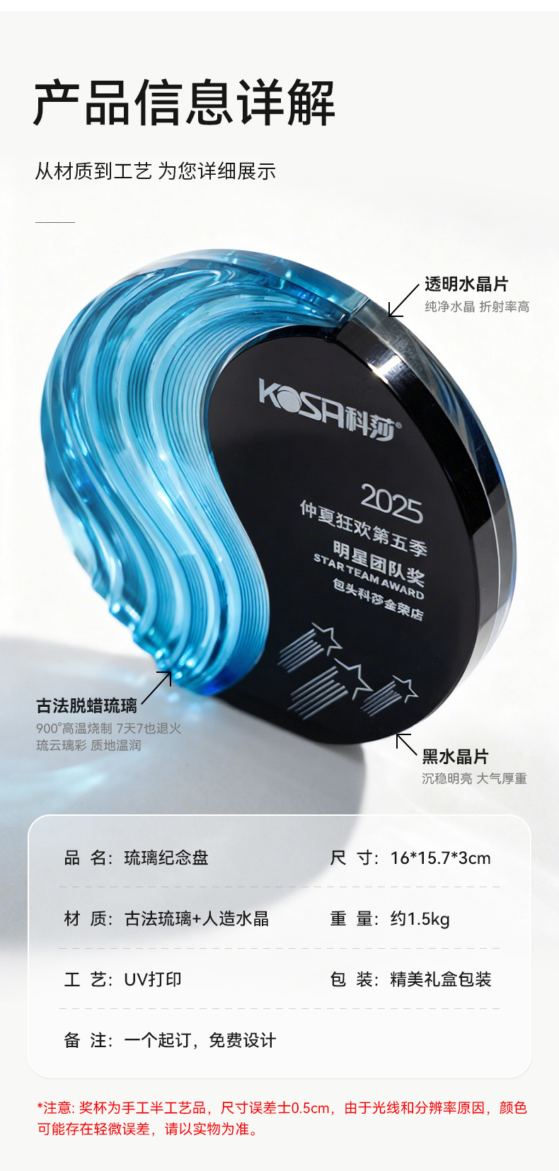 2 / 【2026新款琉璃水晶奖杯】定制定做公司年度优秀员工团队颁奖创意奖杯订制制作