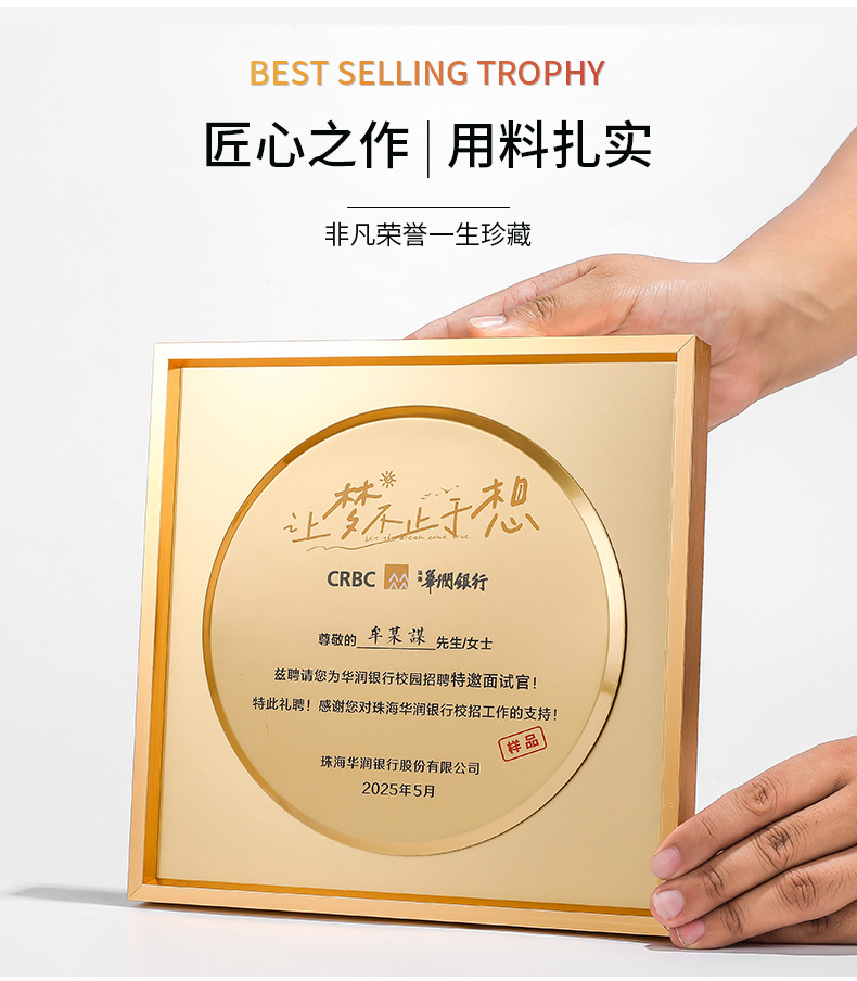 62 / 金属奖牌授权牌定制高级牌匾退休留念优秀员工奖代理牌制作合作