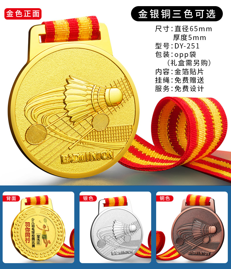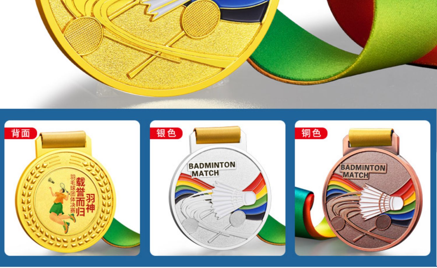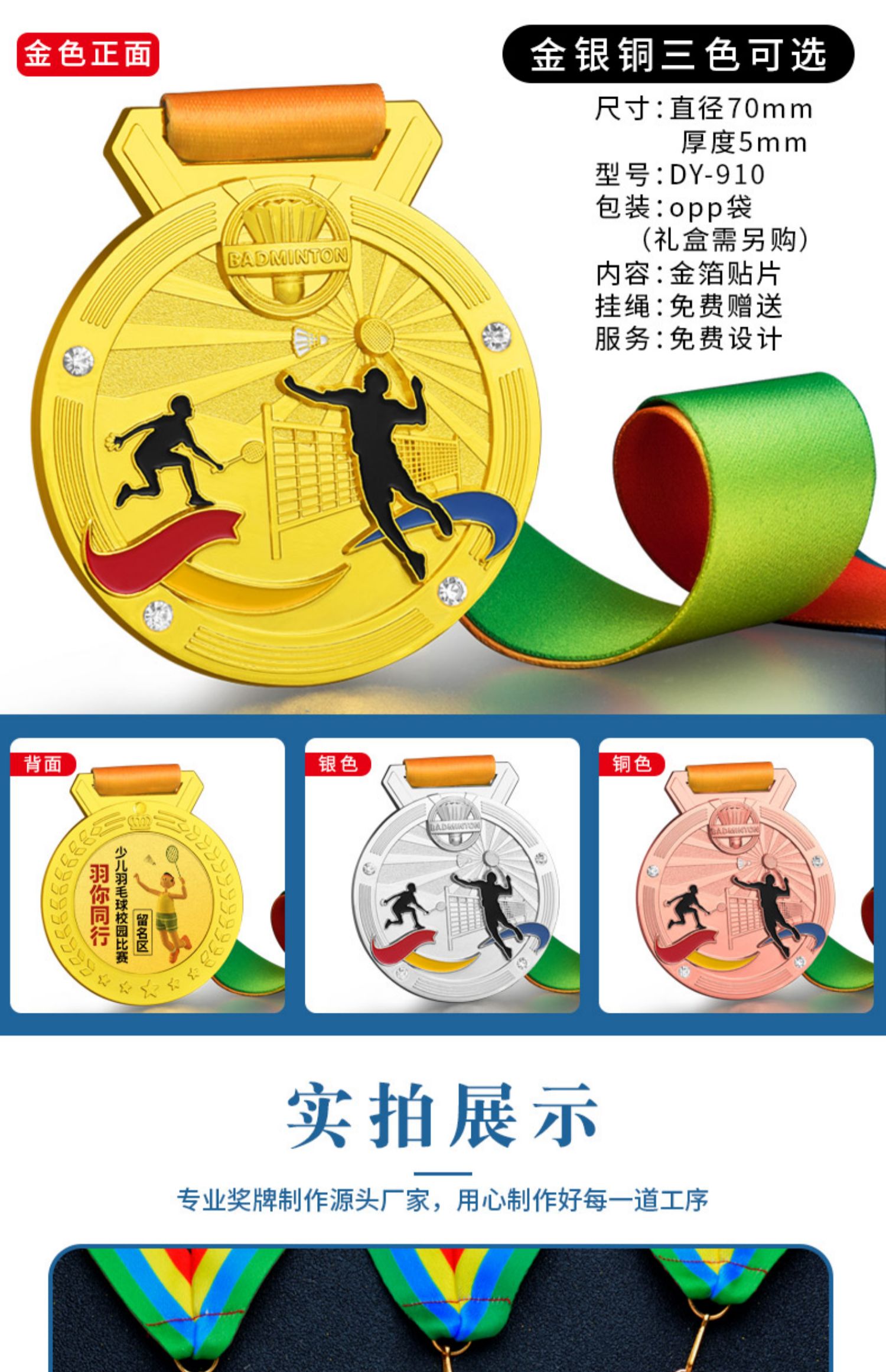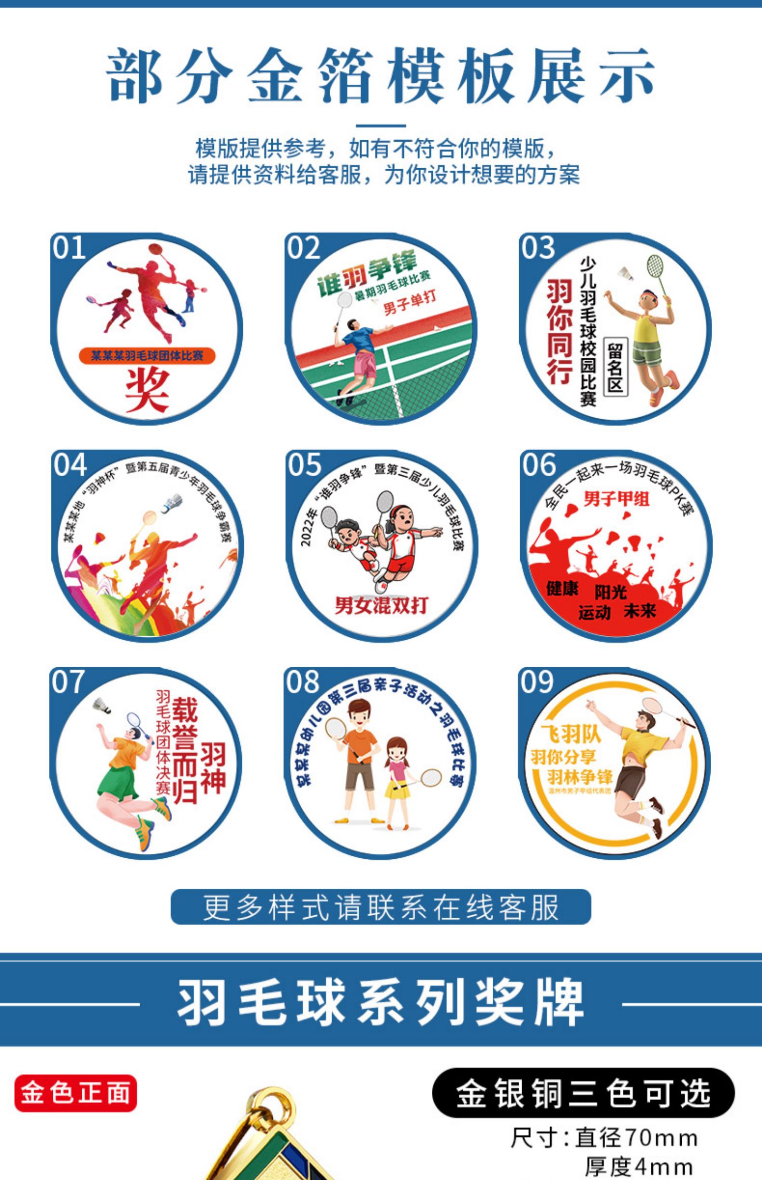 873 / 羽毛球奖牌定制金属金箔金牌运动会冠军颁奖体育赛事荣誉挂牌定做