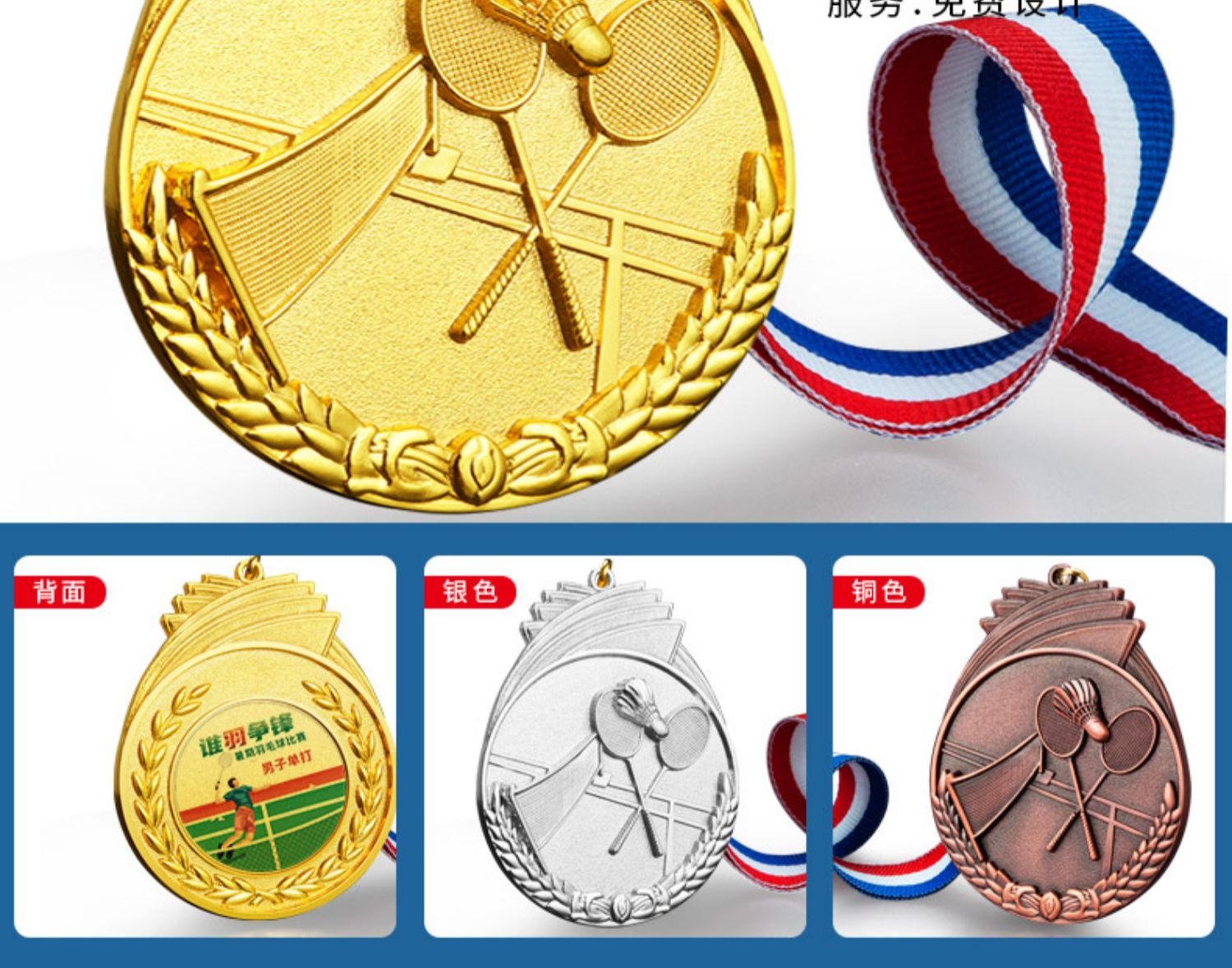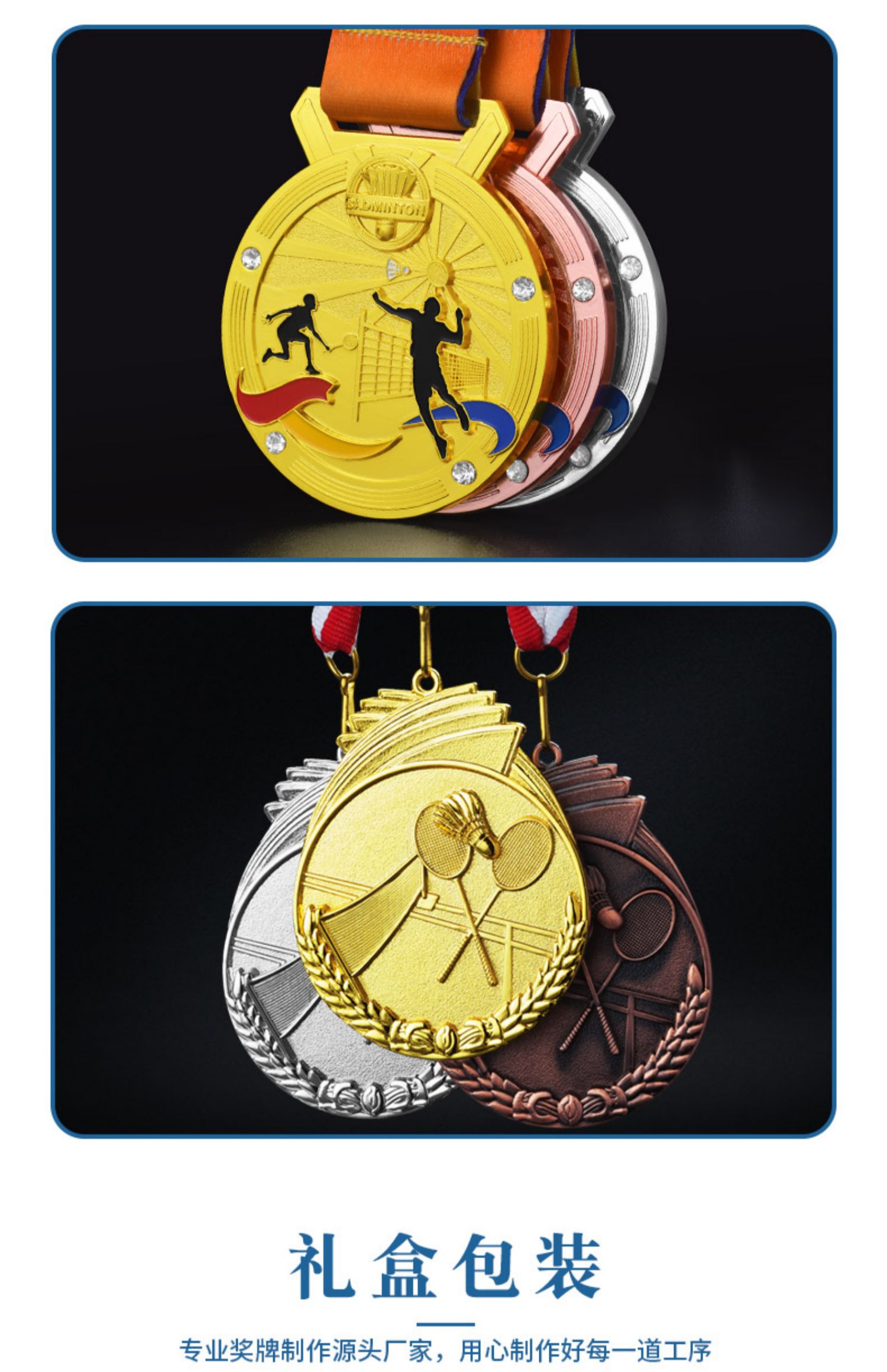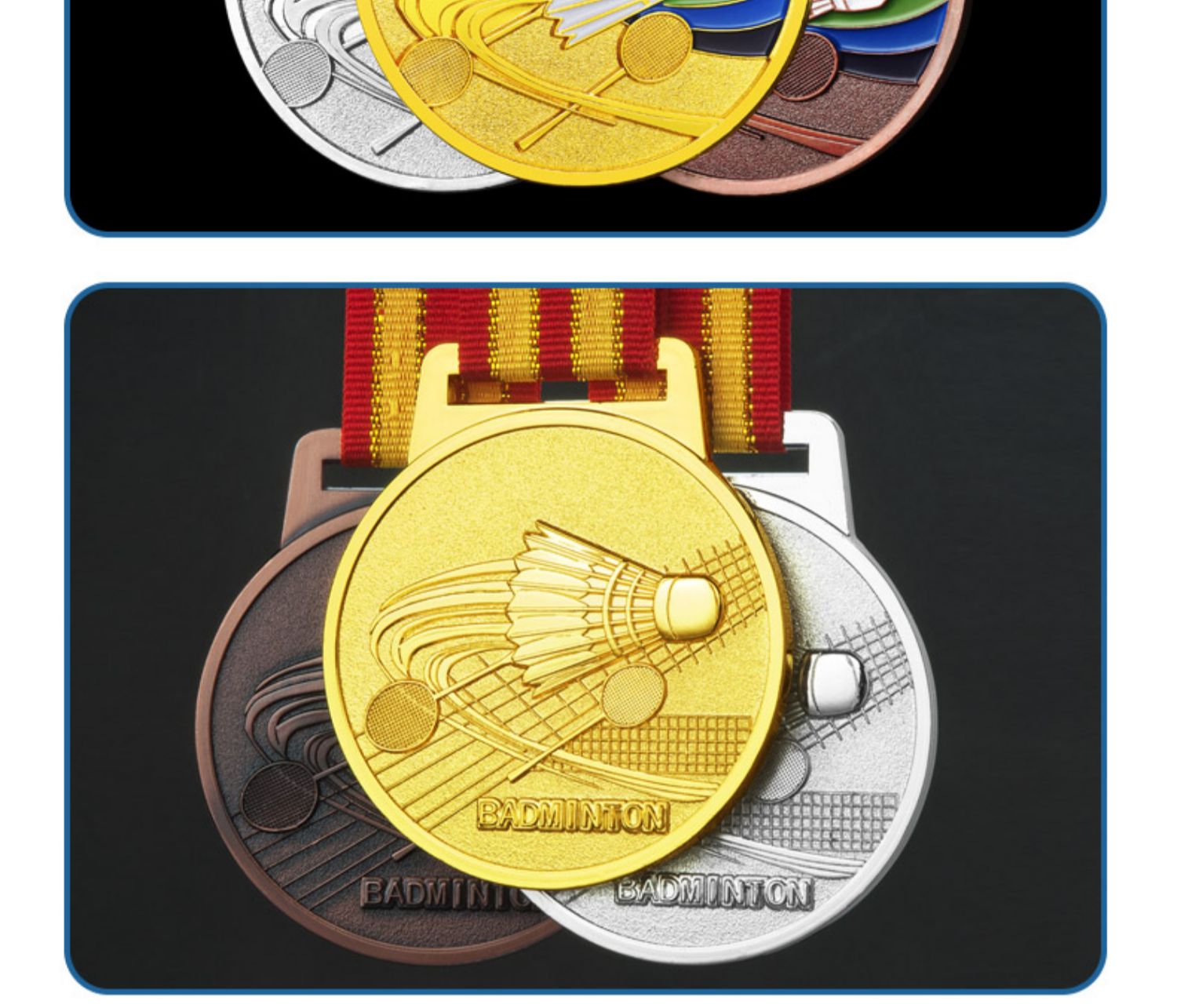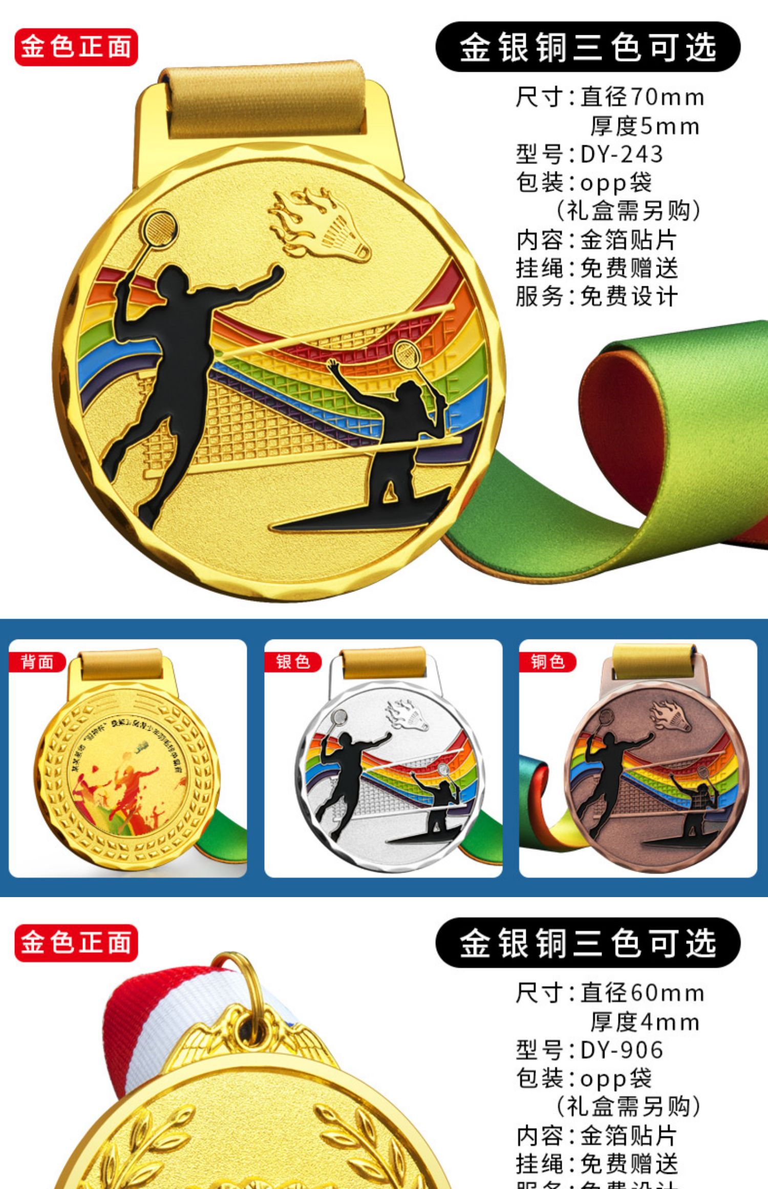 873 / 羽毛球奖牌定制金属金箔金牌运动会冠军颁奖体育赛事荣誉挂牌定做