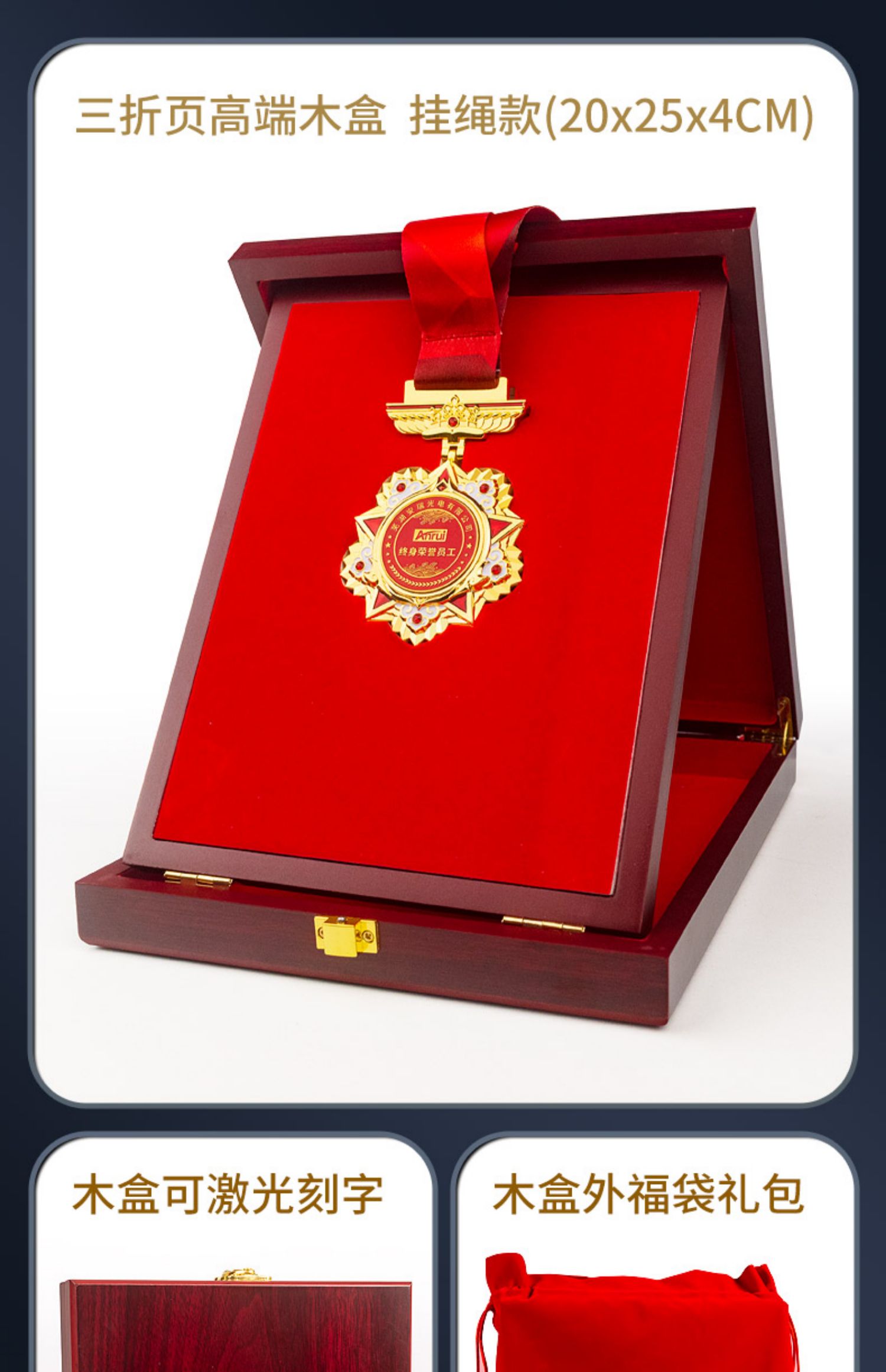 盾牌压花铝片奖牌 折叠木盒式奖牌系