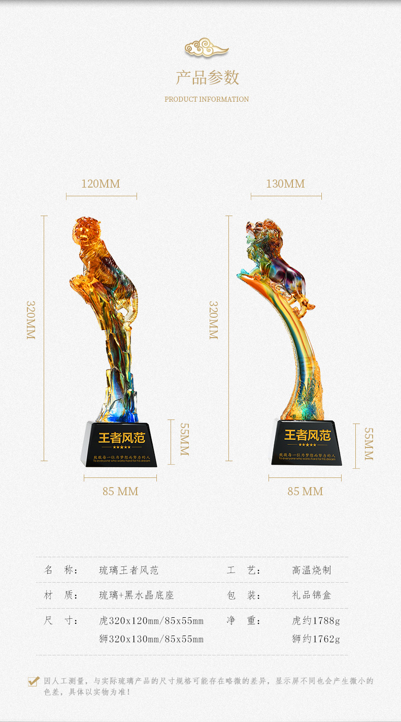 琉璃奖杯高档大气 新款虎年琉璃奖杯