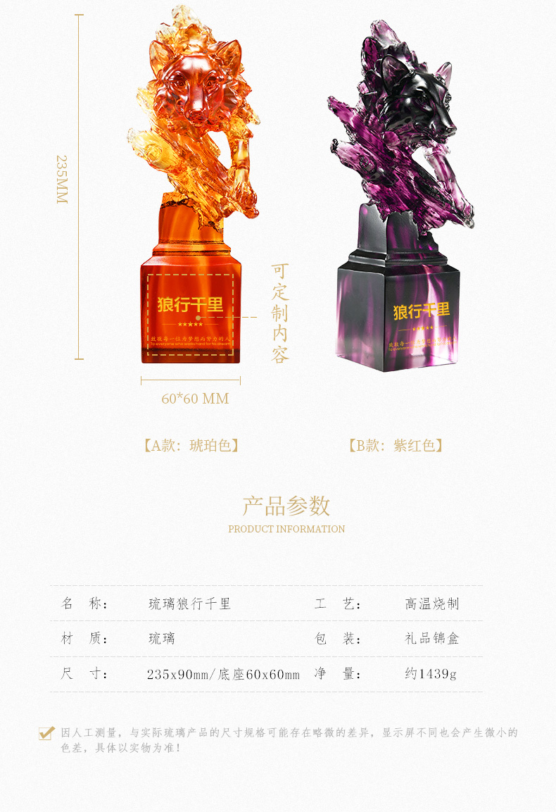琉璃水晶奖杯定制 【古法琉璃奖杯】