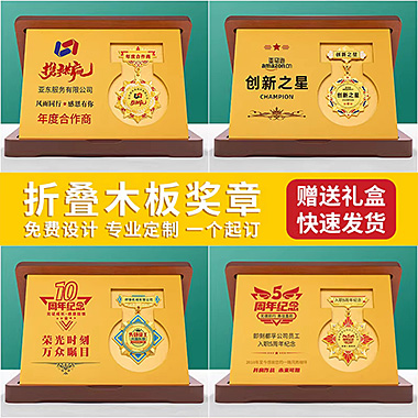 616 / 成都勋章定做折叠木板奖章退休十周年胸徽章年会优秀员…