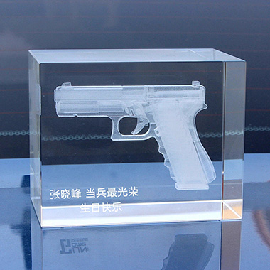 1015 / 成都内雕水晶手枪模型工艺品摆件军部队退伍兵纪念礼…